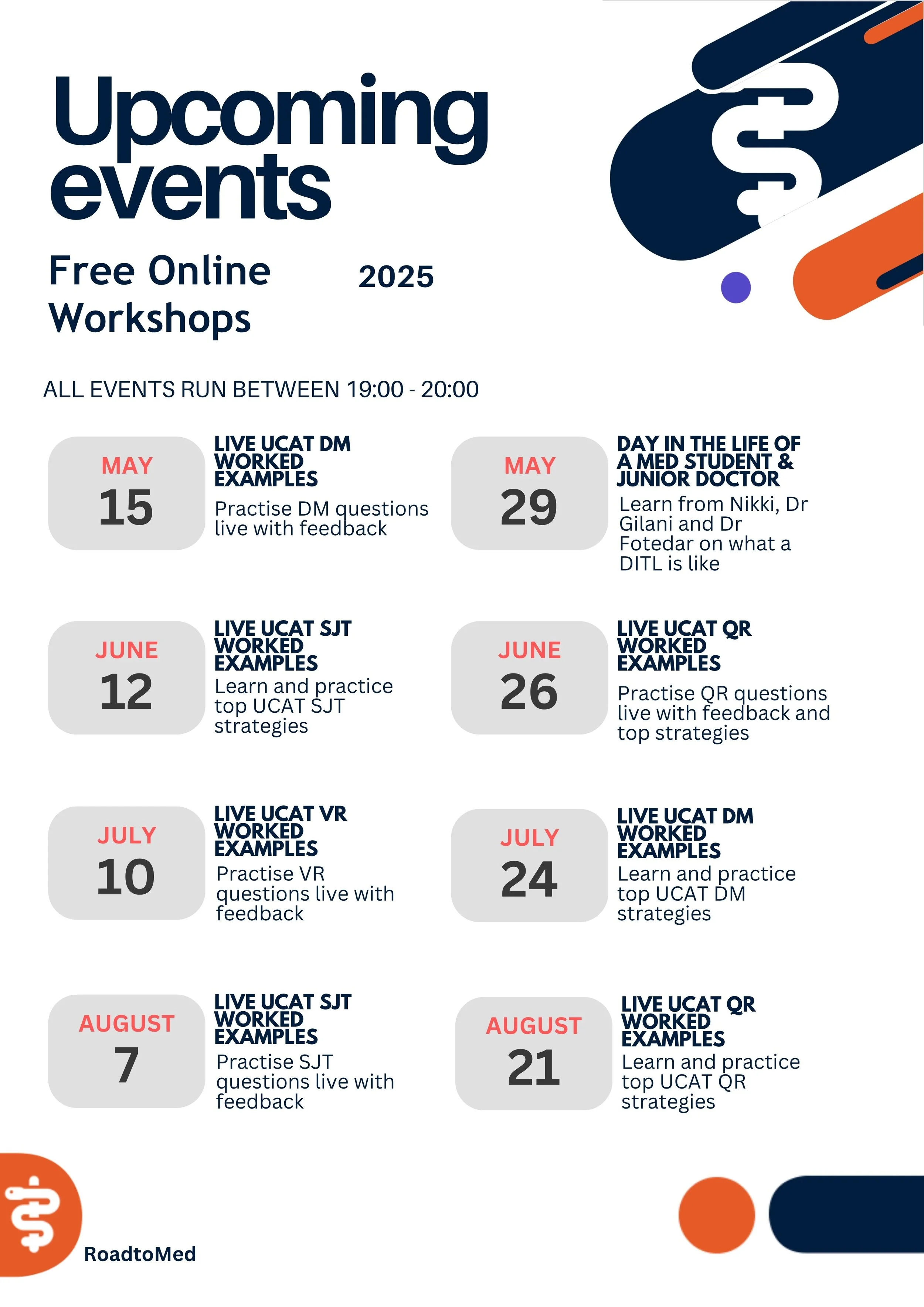 We run regular biweekly free workshops to support you with UCAT preparation, UCAS, the Personal Statement & Medical interviews.
